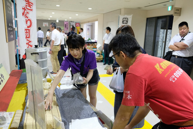 その後、熊本県庁地下に設けられた“熊本いきなり団子”の即売所に向かった井上瑠夏は、さっそくいきなり団子の販売をお手伝い。用意された100個のいきなり団子は完売となった。