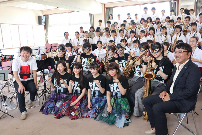 8月9日に中越高校で初顔合わせしたTEAM SHACHIと中越高等学校 吹奏楽部のメンバー。 TEAM SHACHIの面々は 「マーチング・アレンジの曲を聴いた時から、 すごくわくわくして、 今日、 中越高校の皆さんと会えて、 そんなに年齢は違わないはずなのに、 ああ、 高校生ってこんなにキラキラしているんだなと、 まぶしいくらいです。 私たちを知らない年配の方も、 高校生との共演は絶対に楽しんでもらえるはずです!」とコメントしている。