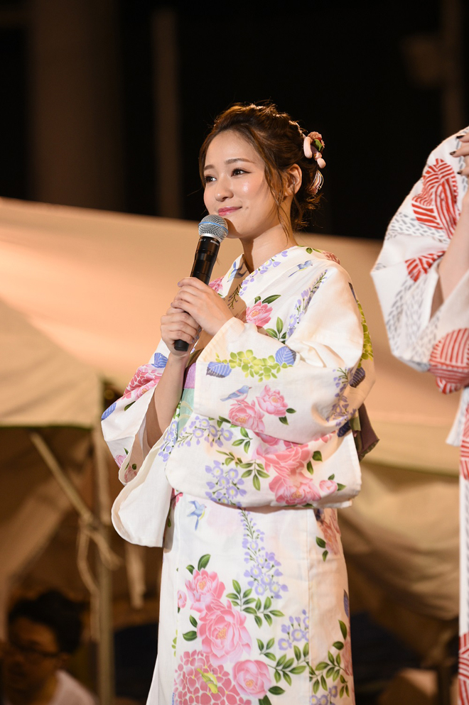 今回のイベントでは、キャストによる自己紹介の後、花火や夏休みの思い出について聞かれた3人。三吉は「花火をちゃんと見たのは今日が初めてです! お祭りに行ったりすることもあんまりなくて、いつも友達と線香花火を庭でやってたので、すごいテンション上がってます!」と花火の規模の大きさに興奮気味。やしろは「私は夏祭りが大好きで、毎年ちゃんと浴衣を着て行くんですけど、浴衣の紐が足りる時と足りない時があって、毎年コンディションがわかりますね」と明かし、会場には爆笑が起こった。chayは「私は元陸上部だったんでけど、夏といえば合宿。みんなでパーティーしたのがすごく思い出に残っています」と自身の思い出を振り返った。