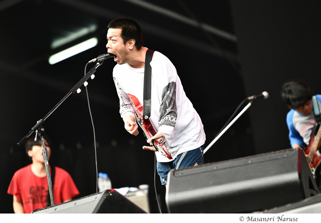 2日目。WHITE STAGEのトップバッターを飾ったGEZANがとにかく爪痕を残した。彼らにはフジロックの直前に取材をさせてもらっていたため、フジロックに対する特別な感情や彼らの思想を理解していたが、そういった贔屓目抜きにしても、40分間のステージでバンドはこれほど自己表現できるものかと衝撃を受けた。「40分で脳をハッキングする」「俺たちは今、変わらなければいけない」といった覚醒を誘うマヒトのMCにも真実味が宿っていた。今立っているステージに来れたのは金でもコネでもなくて自分たちの想像力によるのだ、と断言もした。「BODY ODD」の演奏で、THE NOVEMBERSの小林祐介やDischarming manの蝦名啓太、鎮座DOPENESSらが次々とマイクリレーしシャウトした光景も鮮烈で、こんな時代に革命の瞬間を目にできたと思えて泣けた。有言実行の彼らが主催するフェス<全感覚祭>が楽しみでならない。