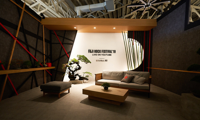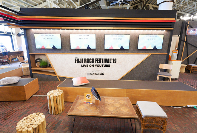 今年も行われたYouTubeでのライブ配信について、Googleの音楽コンテンツパートナーシップ・マネージャー、佐々木 舞氏に現地苗場で話を聞くことができた。取材場所として案内してもらったのは、アーティストのホスピタリティー・エリア内にあるYouTubeラウンジで、会期中はここのラウンジエリアでアーティストのインタビューも行われ、公式チャンネルより配信された。YouTubeが空間作りもしているこのラウンジは、フジロックが日本を代表するフェスであることから、画面を通して視覚的にも日本の文化を届けるという意味合いで、盆栽が飾られていたりと和風のテイストも盛り込まれている。