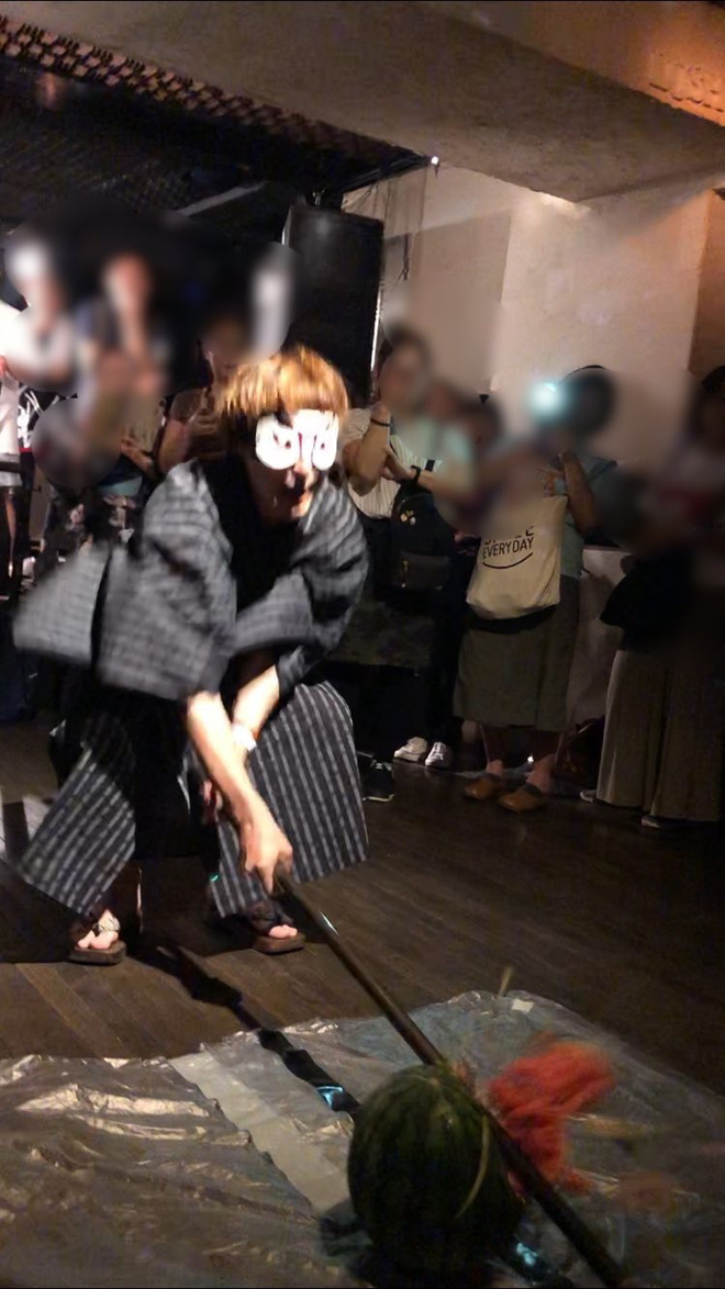 夏だから、会場でスイカ割りをやったり、ドレスコードが浴衣だったり、浴衣のレンタルをしたり、夏グッズが会場内に飾り付けられていたり、抽選会があったり、オリジナルカクテルがあったり。