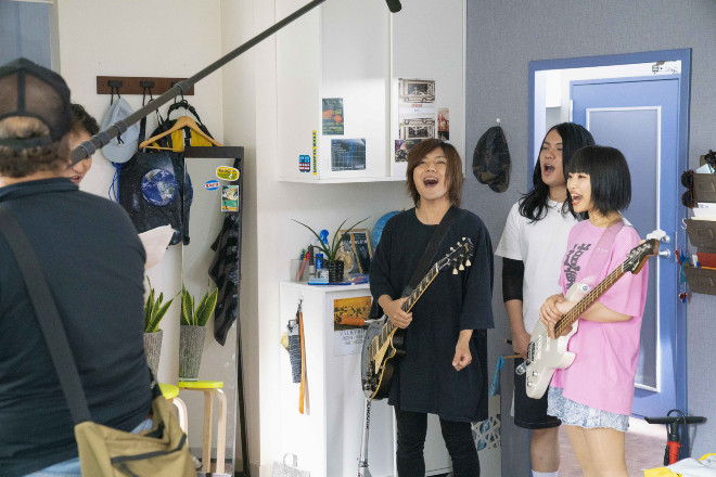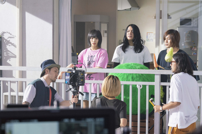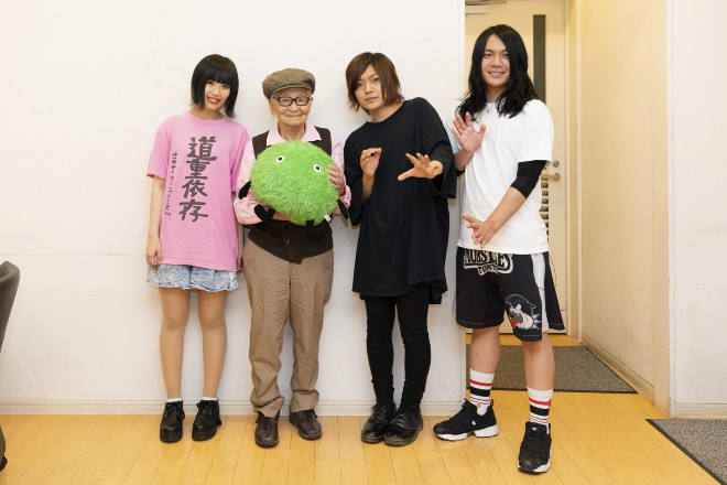 撮影後半は30秒篇の特別ゲストとして出演するムツゴロウさんとの撮影。ムツゴロウさんに挨拶に向かった3人が自己紹介すると、ムツゴロウさんは「“かしこい”Tシャツ屋さんよりずっとイイよ~」とバンド名を気に入った様子。