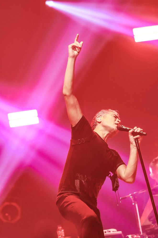 「The Gundogs」「GOOD SAVAGE」ではゴツゴツした無骨なバンドサウンドに会場内が激しく揺れた。吉川、生形、ウエノの3人が並んで演奏する光景は壮観だ。吉川はもちろんだが、ステージ上の全員が実に絵になる。本編ラストは吉川がデビュー10年の節目で作った「BOY’S LIFE」。<手遅れと言われても、やれる気がしてるのさ>というこの歌の内容は35周年の今も有効だ。エンディングでは35周年を締めるシンバルキックが炸裂。回転しながらシンバルを蹴り、体ごと床に落下して、すぐに腹筋を使って立ち上がると、盛大な拍手が起こった。倒れても倒れても、立ち上がる。そんな吉川の不屈の精神を象徴するかのようなパフォーマンスだ。