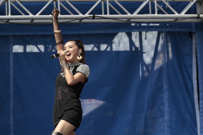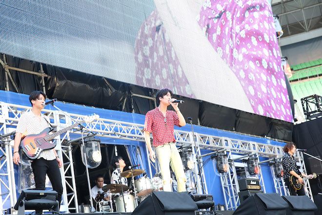 みずみずしい生バンドでの音像が夏空によく映えるシューティングアクト・I Don’t Like Mondays.を経て、次なる時間はTHE RAMPAGE from EXILE TRIBE。大所帯ながら、一糸乱れぬ繊細さを下支えにしたストロングなパフォーマンスと、白一色の硬派な衣装から漏れ出る色気に会場中の視線は終始ロックオン。ボーカル勢の熱量の高さ、さらにパフォーマー勢の凄みすらあるアクトの化学反応が結実した圧巻の時間となった。