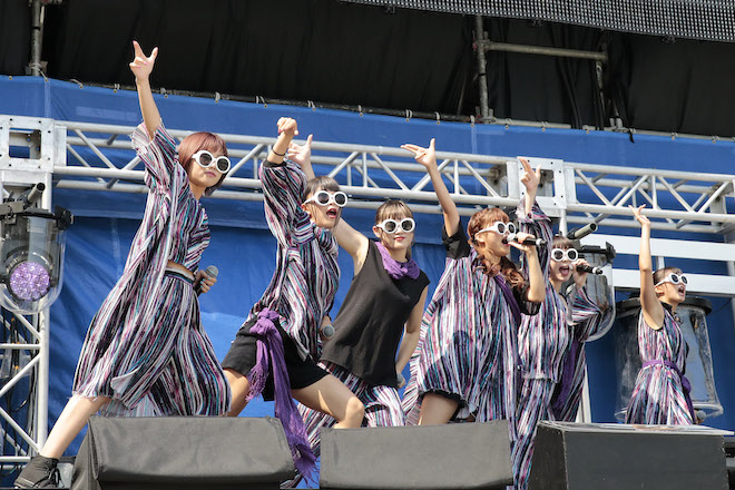 強靭なロックにラップやダンサブルな要素をミックスした9人組、SUPER★DRAGON。「こんな大きいステージに呼んでもらえてありがとうございます!」と朗らかなMCとは裏腹に、全身を揺さぶるタフネスなステップで魅了。また一歩、飛翔を感じる時間となった。
