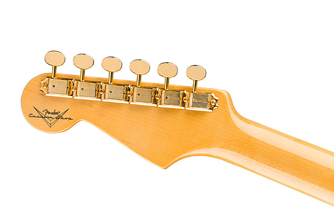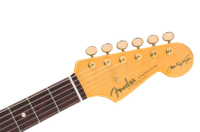また、スティーヴィー・レイ・ヴォーンのヒーローであるジミ・ヘンドリックスに対するオマージュとして、SRVが右利き用のギターに左利き用のトレモロブリッジを載せ替えていたことから、シグネイチャーモデルでは何のストレスも抱かずレフティの位置でもアーミングできるように工夫が凝らされている。2ピースから成るボディは、重量と木目を厳選したアルダー材を使用。そして、NOS(NEW OLD STOCK:エイジド加工を一切施さず、新製品として過去のギターを現在に甦らせたモデル)ラッカーフィニッシュは、長い期間プレイし続けるほどに弾き手の特徴に合わせて自然な風合いでエイジングされていく。さらに追柾目に木取ったメイプル材ネックは、レイ・ヴォーンのメインギターが作られた時期でもある1960年代の代表的なプロファイルであるオバール“C”シェイプを基調に、1弦側を少しだけ薄くすることでベンドする際に天高く突き抜けるトーンを得られるように設計されている。妥協のない徹底したプロファイルによって、彼が愛したギターのフィーリングを忠実に再現したモデルに仕上がっている。