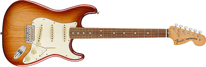 オリジナルが持つ、その年代の本物のトーンのために、70年代のシングルコイルStratocasterピックアップのトリオを作り直した。本物の70年代の要素であるフラットなスタッガードポールピースは、弦を弾いた際に、バランスの取れたレスポンスを生み出す。クリスタルのようで、ベルのようなそのトーンは、フェンダーを著名にした、明瞭で鮮明な音色だ。“Early 70s C”型ネックは、7.25インチ(184.1ミリ)のメイプル指板、クラシックな演奏感を演出するヴィンテージスタイルのフレット21個を備え、6点留めのシンクロナイズドトレモロ、年代を象徴するF刻印のチューナーを採用。オリジナルの時代の美学、堅実な演奏性、チューニングの安定性を提供する。その他の機能として、3点留めネックプレート、クロム製ハードウェア、ヴィンテージスタイルのストラップボタンを採用する。デラックスギグバッグが付属。