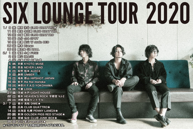 SIX LOUNGEが、1月から3月にかけて全国ツアー<SIX LOUNGE TOUR 2020>を開催する。