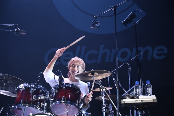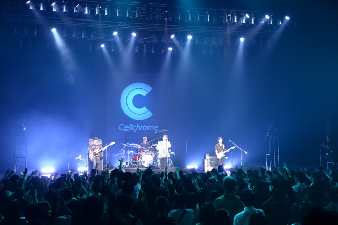 「さあ、ラストスパート! 準備はいいですか?」とMizkiが煽ると、「アダムトイブ」で会場がヒートアップ。ニワケンがアグレッシヴに攻めた「120% 〜BOOM BOOM SUMMER〜」では陽介がラップをかまし、「Everything OK」でtatsumaの笑顔が弾ける。最後のサビ前にブレイクするとMizkiが「続き、聴きたいですか?」とひと言。これに会場が大歓声で応え、再びサビが始まると“Cellchrome Debut 2 nd Anniversary”と記された銀テープが飛び出し、会場のテンションはこの日一番に膨れ上がった。