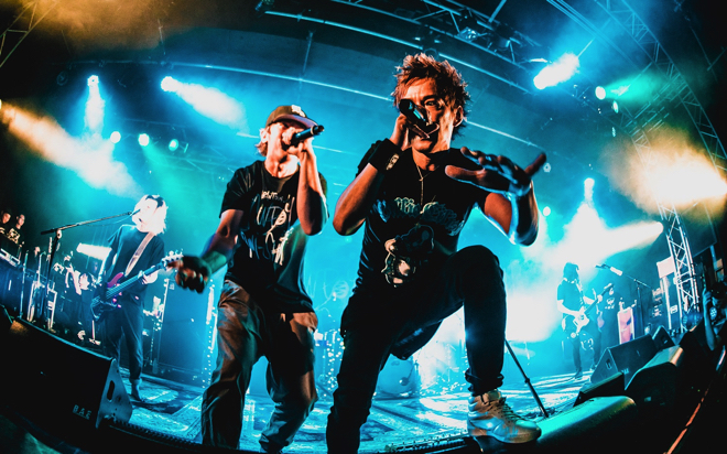 INORANと来門は互いにアイコンタクトをしながら、マイクを持ってステージを所狭しと動き周り、呼応し合う力強いツインボーカルでオーディエンスを魅了。90年代インダストリアル・ロックを彷彿とさせる、イナたいビートが特徴の「Gonna break it」。ライブでは、来門のリズミカルなリリックによって、縦ノリなバンドのリズムに横ノリのフロウ感が加わり、独特で強烈なグルーヴが生み出されていた。