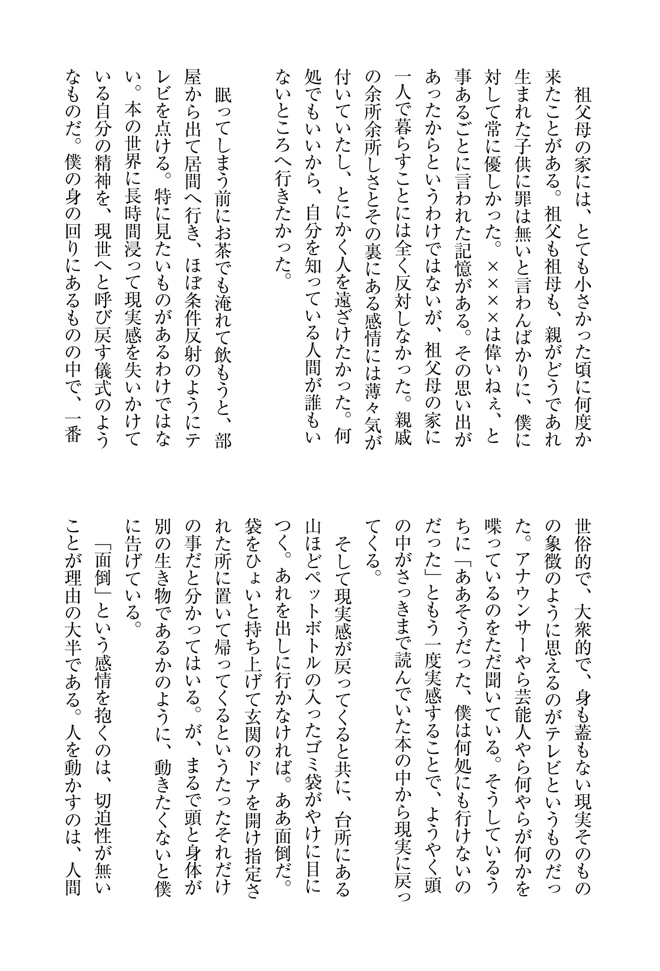 お話を一つ書きました。僕が毎日考えている、ある事に端を発する話です。