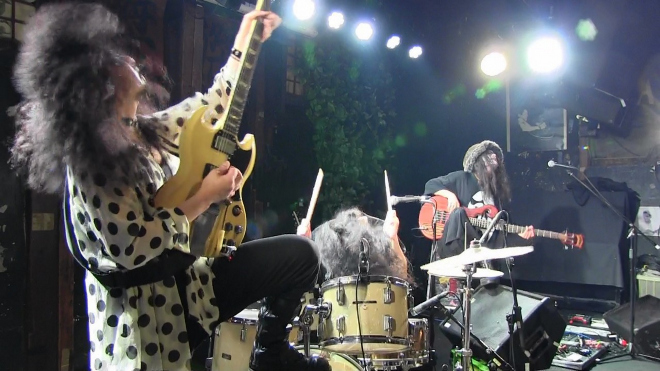 ナオ:あのね、ライヴハウスを変なふうにしたくて。アトラクションにしたかったの。入り口の壁に隙間なく全部首振りDollsのポスター貼って、会場に入ったら、俺が書いた殴り書きの書を笹と一緒に貼り付けて、お化け屋敷みたいにして。お化け屋敷といえば柳なんやろうけど(笑)、何故か笹で。