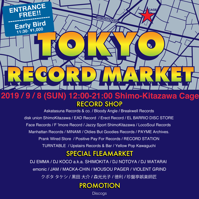 東京を代表するレコードマーケットとなり、海外からの来場者もかなり多く、一段と盛り上がりをみせているが、下北沢ケージでの開催は今回が最後になるようだ。今回もレコードショップが21店舗に加え、アーティストフリーマッケットには、DJ EMMA、クボタタケシ 、DJ WATARAI、MACKA-CHIN、DJ KOCOなど、国内を代表するDJがレコードを放出する。Eary Birdとなる優先入場のシステムは今回も導入され、いち早くレコードをチェックしたい人にはマストとなっている。