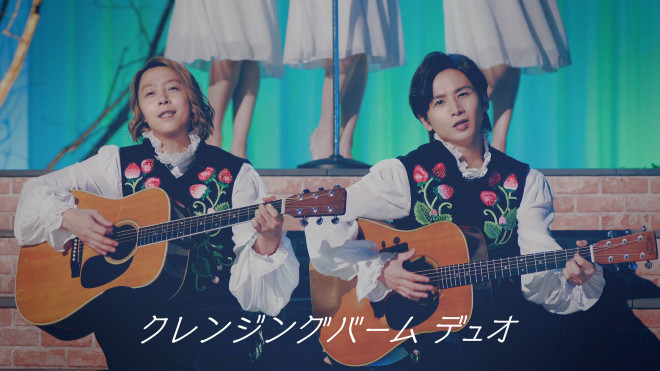 これはKinKi Kidsが“デュオ本兄弟”という架空の人気デュオに扮して「デュオ ザ クレンジングバーム」の効能を歌い上げるCMシリーズの第2弾。今作では、お肌のくすみや毛穴の黒ずみに悩む女性たちの様子を甘酸っぱい恋心になぞらえた新曲「いちごのはなの君へ」が歌われる。