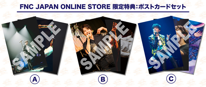 なお、FNC JAPAN ONLINE STOREで商品を購入すると、限定ポストカードセットがプレゼントされる。日本で開催した<One Fine Day>、<Summer Calling>、<Summer Calling@Xmas>の3公演の写真がそれぞれ1枚ずつ3枚1セットで、絵柄が違うA/B/Cの3パターンのいずれかがランダム封入されるようだ。