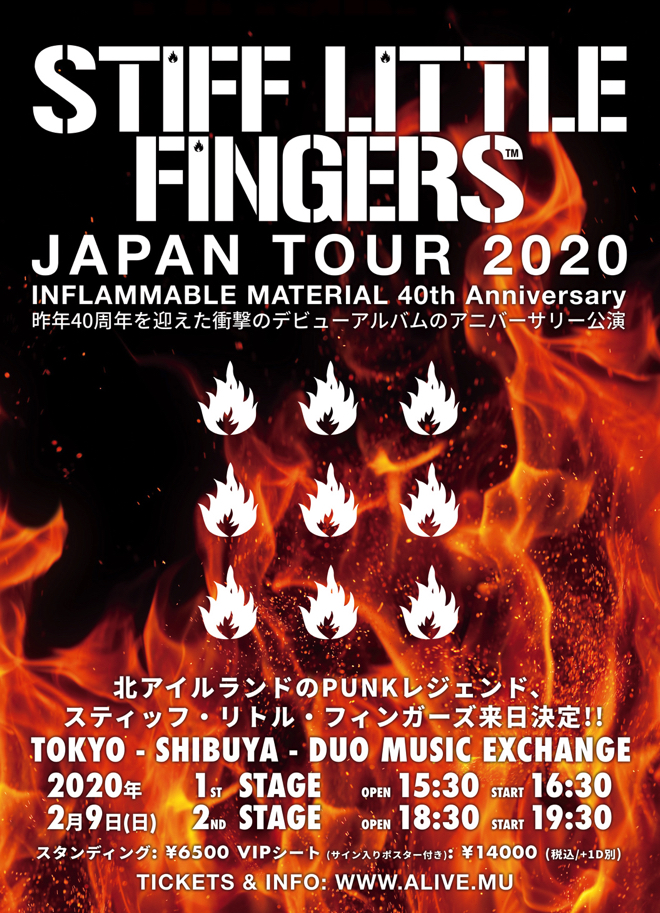 彼らの来日公演は2014年以来およそ6年ぶり。今回は<STIFF LITTLE FINGERS – INFLAMMABLE MATERIAL 40TH Anniversary Live ->と題して、1979年に発表されたデビュー・アルバム『Inflammable Material』の40周年を記念した二部制のステージが披露されるということだ。「Alternative Ulster」や「Suspect Device」「Wasted Life」など『Inflammable Material』に収録された名曲の数々に加えて、他アルバムからの定番曲もたっぷり演奏予定とのことなのでお楽しみに。