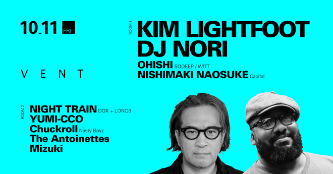 華々しい歴史を持つニューヨーク・ハウスの伝統を現代に伝承する2人のマスター、キム・ライトフットとDJ Noriがダブルヘッドライナーとして10月11日の表参道VENTにて3度目となる共演を果たす。