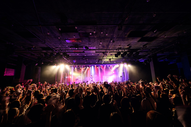 「よーこそリキッド、いい景色作ろうぜ」とSHINが挨拶したあと「ぶっ壊せ!」の声を合図に「Miss Lily」ではフロア中の観客の頭上でタオルが勢いよく旋回。続けて、SHINの音楽の原点でもある「GLAMAROUS SKY」のカバーでメロディアスな歌をとき放つと、とたんに爽快感たっぷりの景色が広がり、盛り上がりは沸点を迎えた。
