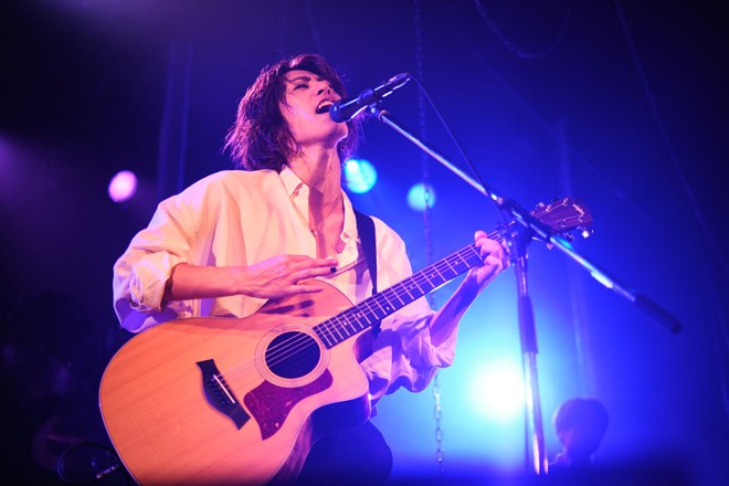 「改めましてこんばんは。ツアーファイナルへようこそ」と笑顔で短い挨拶をしたあと、SHINは新作『AZALEA』について「みんなと楽しめるアルバムを作りました」と解説。そして、次に演奏する曲は「みなさんと踊りたい」と提案し「私、可愛い振りを考えてきました。これ、みんなでやると絶対可愛いから」といって、手を広げて羽をはためかす振りをオーディエンスに自らレクチャーしていく。いままでなかったようなSHINとオーディエンスとの触れ合いで、場内はなんともいえないピースフルな空気に包まれ、そのあとに放った「センターオブトーキョー」はファンキーなダンスグルーヴと可愛い振り付けがあいまって、歓喜溢れる盛り上がりとなった。