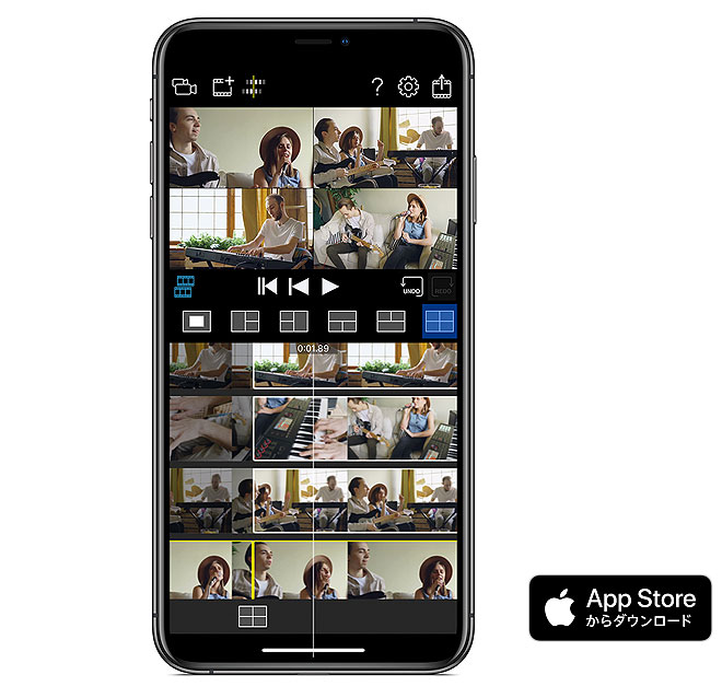 ローランド、最大4台のiPhoneでバンド演奏を同時に録画、マルチアングル動画が手軽に作成できるアプリ「4XCAMERA Maker」