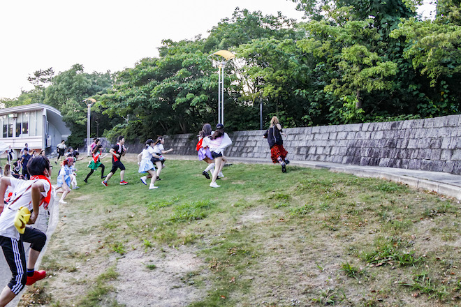 「ラストスパートいけるか!」という煽りから「國立少年」へ移ると、ステージから客席へと降りて歌うマモ。その様子を持っていたスポーツタオルを振り回しながら見守る指定女子と指定男子。まさに、夏の野外ライヴにぴったりの光景だ。そのあとには「アイアンメイデン」「-死刑-」を立て続けに演奏するなど、今日倒れても後悔はないといった感じで全身全霊をかけてステージを動き回るメンバー。そして、本編ラストには「フラッシュバック」を。曲の演奏後、全てをやり切ったという表情で袖にはけていった彼らに客席からは大きな拍手が贈られたのだった。