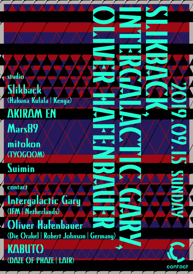 Contactフロアには、オンラインラジオ局『Intergalactic FM』の創設者Intergalactic Garyが出演。エレクトロ/テクノ/アシッドのほか、多彩なジャンルのディープな領域を巡りながら各界隈で評価を獲得してきた彼が、膨大な知識とDJスキルをつうじて長年培ってきた独自の未来観をフロアに投影する。さらに、ドイツの名門クラブRobert Johnsonの中心人物Oliver Hafenbauerも参戦。自身のレーベル“Die Orakel”からのリリースでテクノ好きの嗜好をくすぐり続ける彼のセットにも注目だ。