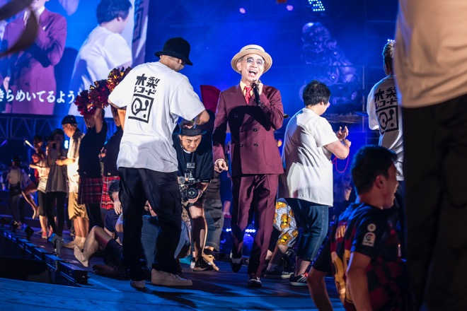 トリのステージでは、自身のレギュラーラジオ番組『土曜朝6時木梨の会。』で募集した100人のダンサーを引き連れる場面も。今後リリースが予定されている「Laughing Days」、自身の妻に捧げる楽曲「I LOVE YOUだもんで。」といった新曲をいち早くパフォーマンスした。