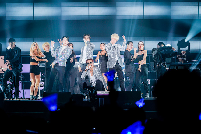 そして一番の盛り上がりをみせたのは『WE』のリードトラック「AH YEAH」。これまでのWINNER節の“メロディとヴォーカルワークで聴かせる”部分はしっかりと保ちながら、世界の潮流を取り入れたサウンドは生バンドとの相性の良さも抜群で、“YEAH”というという掛け声と共に、フロアの興奮は最高潮に達する。
