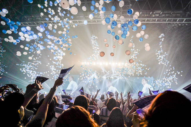 その後、お返しと言わんばかりに、本ツアーで初披露となる「SONG 4 U」を披露。ラストのサビでは今度はスタッフからメンバーへのサプライズとして1万個の青いバルーンが会場に降り注がれた。先ほどのサプライズで涙をこらえていたメンバーも会場のファンも全員が涙し、感動に包まれる中、最後にリーダーのYOONは「人生の中で一番幸せな瞬間でした。これからも僕たちのそばにいてください!」という感謝の言葉と共に予定外のダブルアンコールを敢行。