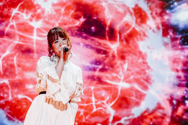 現在、UNIDOTSのボーカルとして活動しているmizukiが愁いを帯びた歌声で「aLIEz」をクールに歌い上げると、サビでは観客全体が大合唱。ライブの後半で「StarRingChild」のイントロが流れAimerが登場すると、割れんばかりの歓声が上がり、優しく包みこんでくれる力強い歌声に会場のボルテージは最高潮に達した。