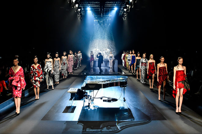 前回のコレクションではランウェイに並ぶ独創的な着物の数々が絶賛された。ショーではモデルがランウェイを歩く中、YOSHIKIはピアノの演奏を行い、途中の舞台暗転からは大量の雨がステージに注がれるという演出が行われた。これは1998年にAlexander McQUEENが行なった前衛的なショーにインスパイアされたものだった。今回のコレクションにも海外からファッション業界の重鎮も数多く駆け付けるとのこと。一体どのような着物の世界を見せてくれるのか注目だ。