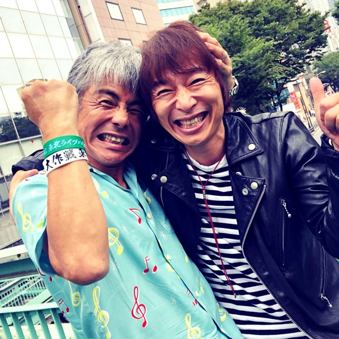 ▲子供SKY WALKER[S] (うじきつよし×宮田和弥)シンガーソングライターのCaravanは存在感のある歌声とギターが魅力。徳島の海と緑豊かな会場で気持ちのいいサウンドに酔いしれたい。
