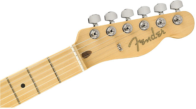 9.5インチR指板とヴィンテージトールフレットは快適でモダンなプレイアビリティを提供。American Originalシリーズに採用されているTelecasterブリッジは正確なイントネーションと真にヴィンテージなトーンを実現する。特別デザインのネックプレートが、本コレクションがプレミアムな逸品であることを物語っている。