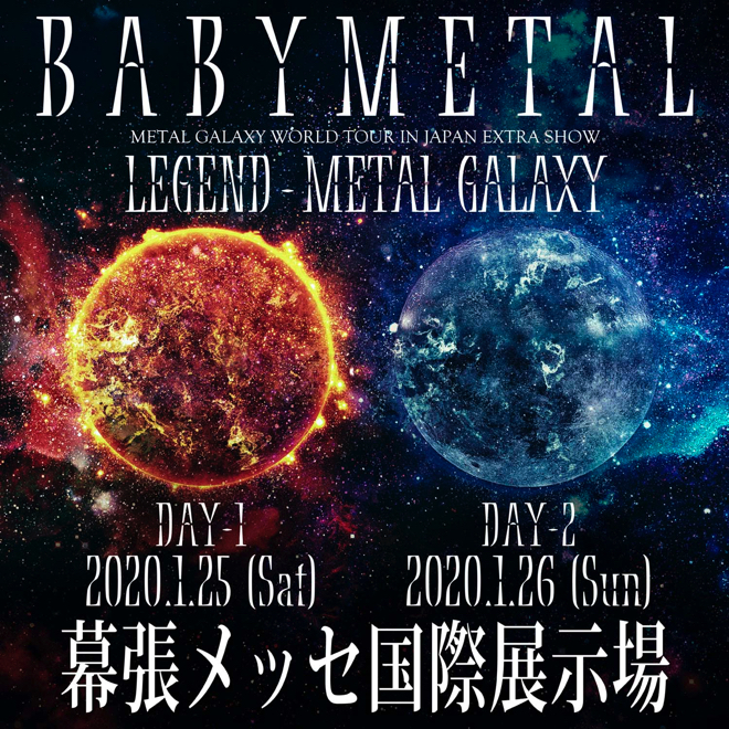 BABYMETALのワールドツアー<METAL GALAXY WORLD TOUR>の追加公演が発表された。<LEGEND – METAL GALAXY>と題して、1月25日、26日の2日間、千葉・幕張メッセ国際展示場にて開催される予定となっている。
