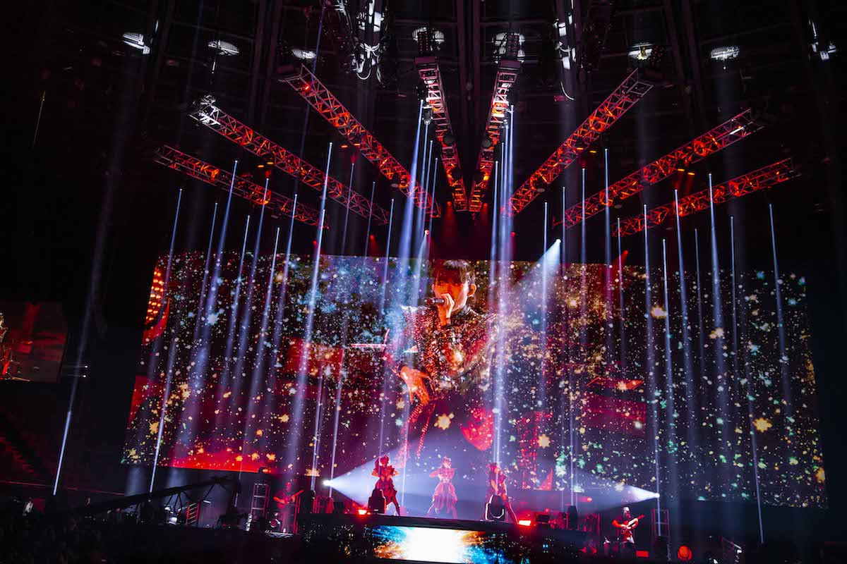 ワイドスクリーンを背にしたステージと移動式センターステージをフルに使い”メタルの銀河”の世界観を作り上げた演出に1曲ごとに演奏が始まるたび歓声が沸き起こり、手を大きく掲げたりアリーナでは何度もモッシュが起こるなど、圧巻のショウを見せつけた記念すべき夜となった。
