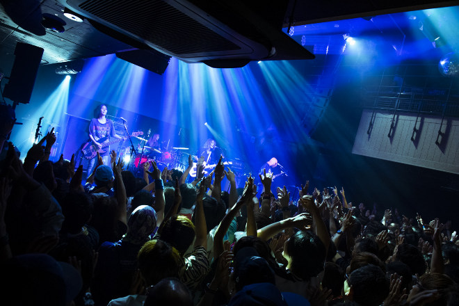 続く、「窓を開けたら」はガラリとムードを変え、アーバンR&Bナンバーを切なく歌い上げてクールダウン。MCではギター&ヴォーカルのHARUNAは超満員のフロアを見渡し、「金曜の夜の盛り上がりとしては最高ですね」と笑顔を見せ、「ふたりと共演できてめっちゃ嬉しい。テンション上がってます!」と語ると、ドラムのRINAが「久々の対バン。新鮮で嬉しい。しかも、ビクターの仲間たちと」と同意。彼女たちのツアーを家入レオが見にきてくれたことを明かし、ベースのTOMOMIは「あいさつした時にちょっとだけ歌ってくれた“瞬間センチメンタル”がめちゃくちゃ上手くてびっくりした。録音したかったくらい」と話し、観客の笑いを誘っていた。