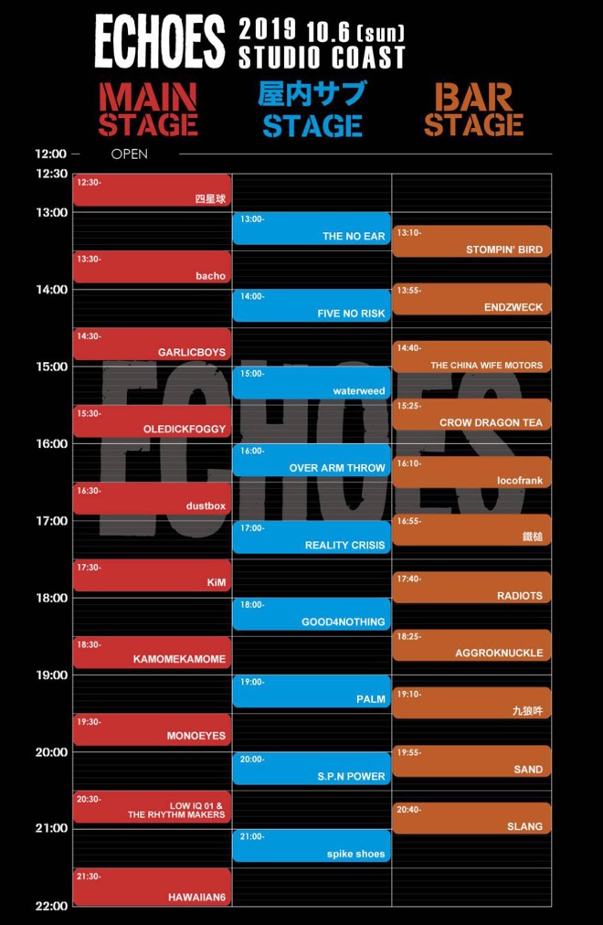 HAWAIIAN6主催<ECHOES 2019>が10月6日、新木場STUDIO COASTにて開催される。同公演のタイムテーブルが発表となった。