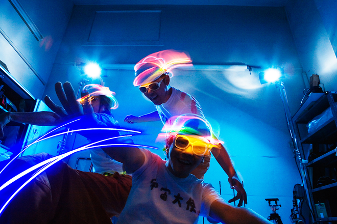 筆者が初めて彼らと出逢ったのは<朝霧JAM>にある丘の上の「宇宙大使マザーシップ『PhotoSpot』」だった。その名の通り、彼らとその仲間たちによって創られた空間では富士山の美しい全景を収める写真撮影を無料で代行してもらえる他、髪をフェス仕様に仕立ててくれる青空美容室があり、フェスをより楽しみたい来場者とその手伝いを買って出るオシャレな前掛けをした人たちとが、和やかに、そしてゆったりと交流していた。音楽フェスにかかわらず、昨今あまり触れる機会がなくなってしまった人と人とが交わるそうした情景はとても素敵だったのだが、後に彼らがそれを仕事でやっていたわけではないと知って彼らにますます興味を持ったし、謎が深まった。