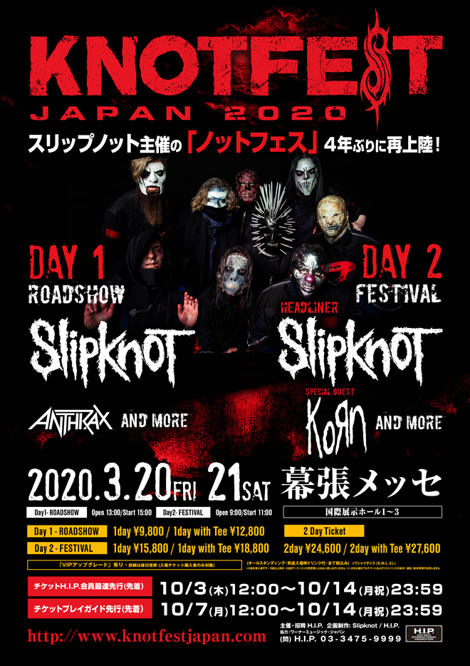 1日目『ROADSHOW』では、現在全米ツアー中のSlipknotヘッドラインショーに加え、豪華ゲスト第一弾としてスラッシュメタル4天王ANTHRAXの出演が決定。