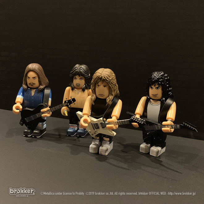 今回の「brokker “METALLICA”」では、『Master Of Puppets』(1986年)当時のメンバーの雰囲気を再現。ジェイムス・ヘットフィールド、カーク・ハメット、クリフ・ バートン、ラーズ・ウルリッヒの4人が、約90mmのブロックトイに変身した。ギター、ベース、ドラムスティックも付属し、公式ライセンス取得のバンド公認アイテムとして発売される。