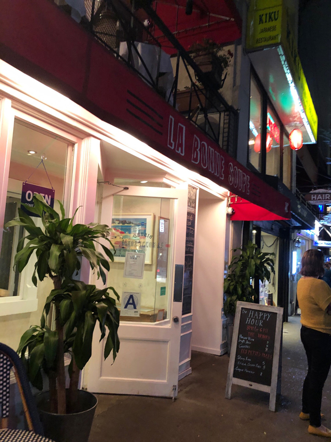 ▲NYディナーを堪能したレストラン「La Bonne Soupe」