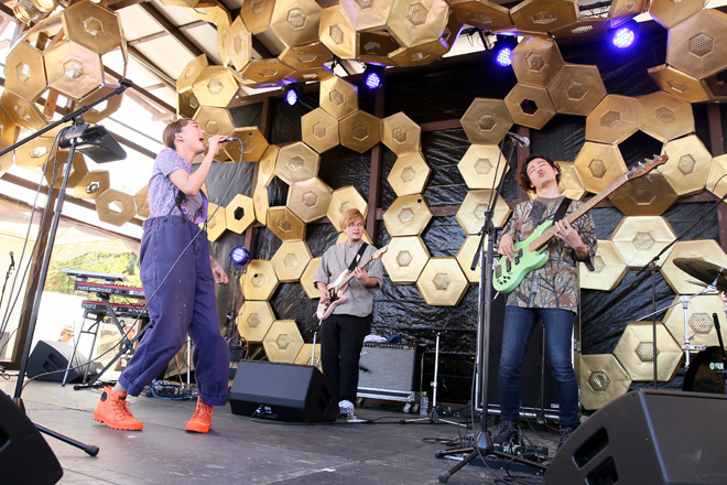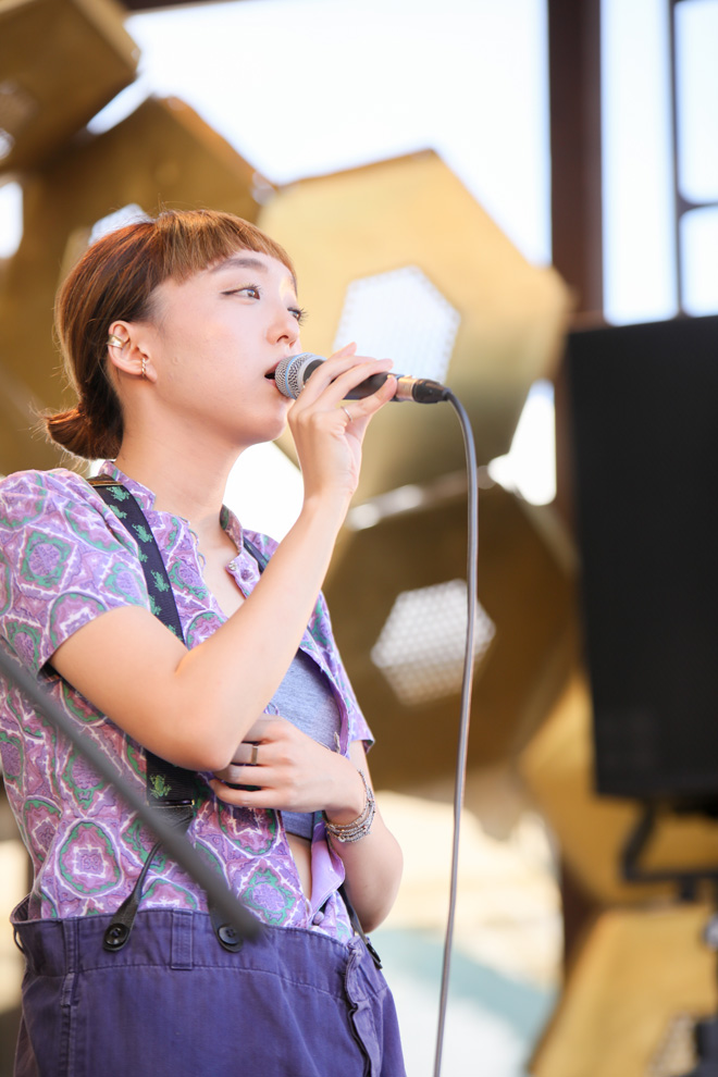 雨予報を見事に覆し、晴天の広がる<中津川 THE SOLAR BUDOKAN 2019>2日目。太陽のひと、佐藤タイジの神通力たるや恐るべし。そんな絶好のコンディションのなか、REALIZE STAGEにものんくるが初出演! 天候に合わせるように「SUNNYSIDE」からライブをスタートさせると、底抜けに明るいコードへ乗せて、心地よいメロディのシャワーを浴びせる。