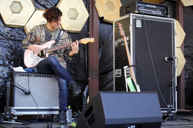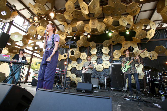 シメは「朝だし声を出して、一緒に歌ってくれますか?」と「ここにしかないって言って ~ HOT CV」。コール&レスポンスも演奏陣のソロ回しも全部盛りの超熱演。数あるアクトにおいて、本当にオーディエンスとつながって、身にも心にもその音楽を響かせるということは一筋縄ではいかない。まして新参ならなおさらだ。しかしライブが終わった瞬間、会場に鳴り響いたのは、盛大なるスタンディングオベーションだった。