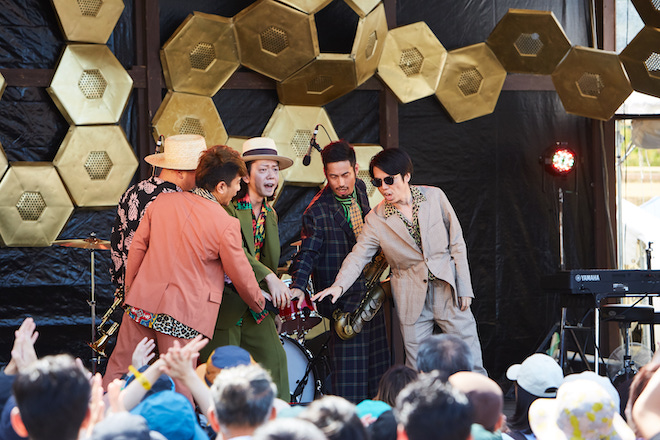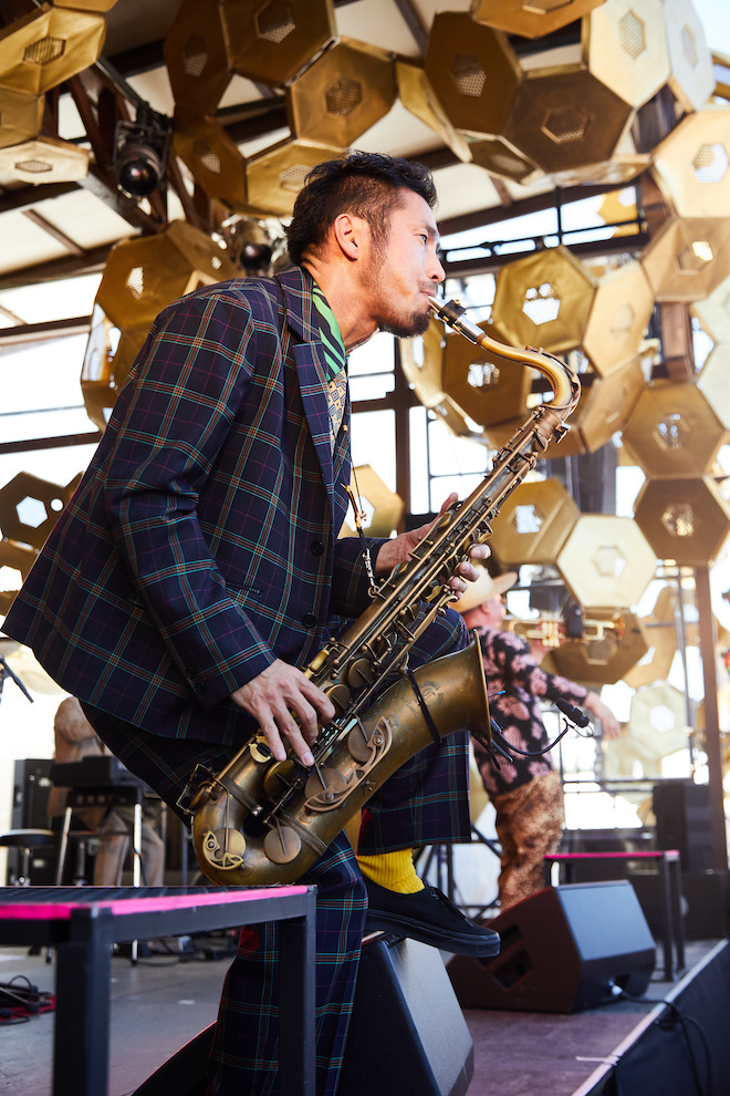 3曲目には東京スカパラダイスオーケストラの「MONSTER ROCK」を躍動的に決め、続く「Guns of Saxophone」ではメンバーそれぞれのソロパートもフィーチャーしながら見せ場や聴かせ場も作る。その間もハンドクラップや激しいステップ、歓声などが止むことがない。恐らく熱狂的なファンばかりが集まっているんだろう。……ところがそうでもなかった。