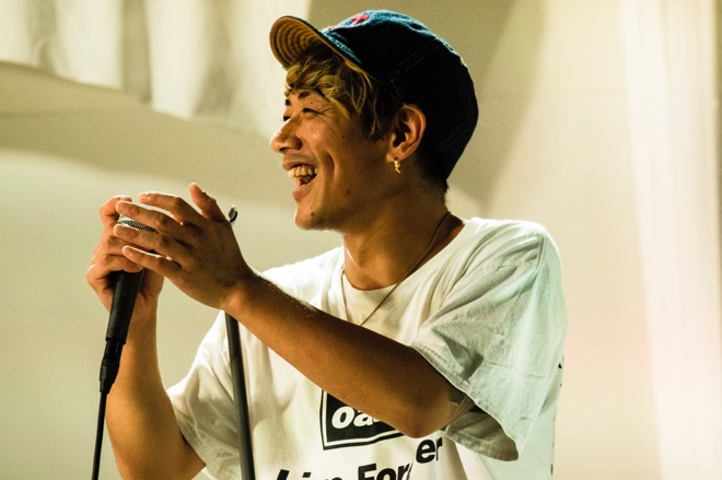 佐藤タイジのお茶目なエピソードをバラしたのち、2度目の乾杯を敢行。「<中津川>最高だったな! こうやってみんなで音楽の遊び場広げて、これからも楽しくやっていきましょう!」と拓。