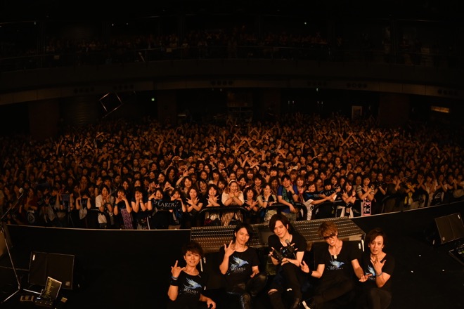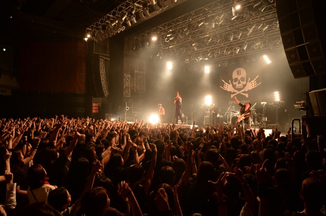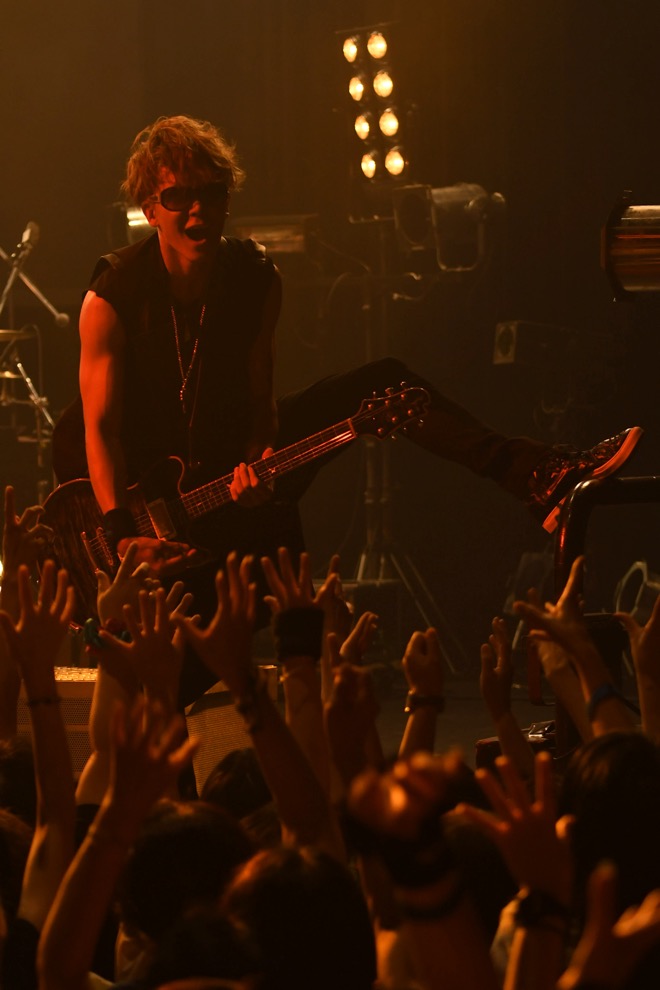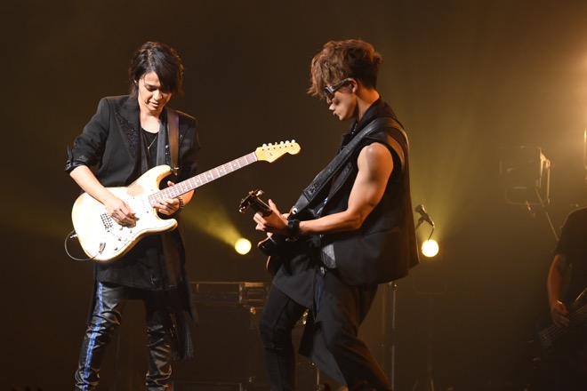 続いて投下されたアルバム『FIGHTERZ』(2009年リリース)収録曲の「NEXT LEVEL」ではDAIGOがシャウト気味に歌いながら下手のステージ縁のギリギリから客席に手を伸ばし、センターでSHINPEIが煽り、AKIHIDEがエキゾティックかつハードなギターソロを響かせる。本気度マックスの3人から伝わってきたのは結成から13年経っても持ち続けているギラギラした渇望感だった。