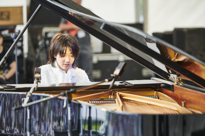 後半では、10月4日公開の新作映画『蜜蜂と遠雷』のコーナーが設けられ、映画で吹き替え演奏を担当したピアニストの藤田真央が、バルトークの「ピアノ協奏曲第3番」をオケと共に演奏。また、ドビュッシーの「月の光」を一人で演奏をした