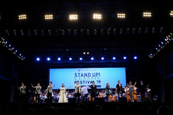 株式会社イープラス(東京都渋谷区、代表取締役会長:橋本行秀、代表取締役社長:倉見尚也)が主催する、国内最大の全野外型クラシック音楽祭<『イープラス Presents STAND UP! CLASSIC FESTIVAL 2019』supported by GALAXY ENTERTAINMENT>(以下、「スタクラフェス」 )が、2019年9月28日(土)午前10時30分、快晴の空の下、横浜赤レンガ倉庫・特設会場にて初日の幕を開けた。