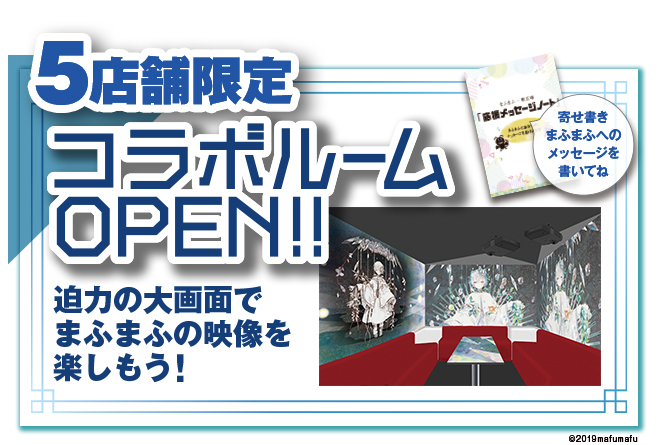 シンガーソングライターまふまふのニューアルバム『神楽色アーティファクト』発売を記念して、カラオケルーム歌広場がまふまふとのコラボキャンペーンを10月25日(金)よりスタート。光るICカードケースが当たる歌唱キャンペーンを実施するほか、ここでしか見られない映像やミュージックビデオを大画面で楽しめるコラボルームが5店舗限定でオープン。さらにまふまふのイメージに合わせたコラボドリンクの注文でオリジナルグラスマーカーが当たる。まふまふの世界観を味わえる企画満載のキャンペーンに参加しよう。